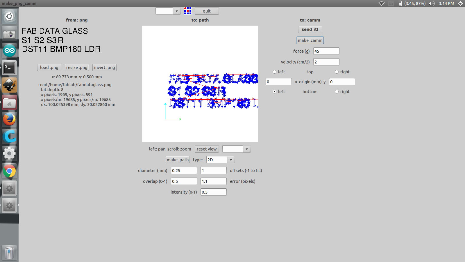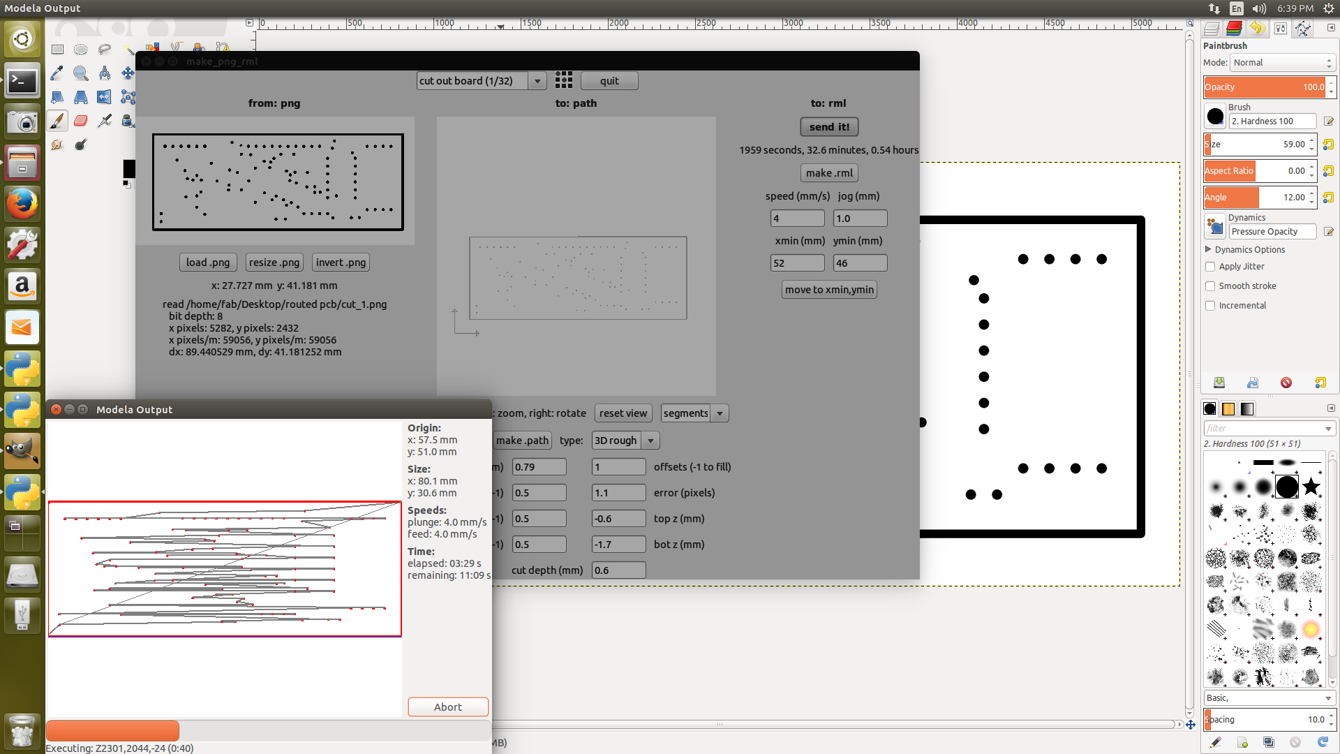 After fixing the X and Y origins i have done some trials to findout the exact coordinates by drilling a 0.8mm hole on the top and bottom of the pcb, for that i have created a small circular dot in gimp and exported into png file. checked the orientation of the holes and done some more trials to match the hole orientations. Finally i found the X and Y origins and then fixed actual pcb.