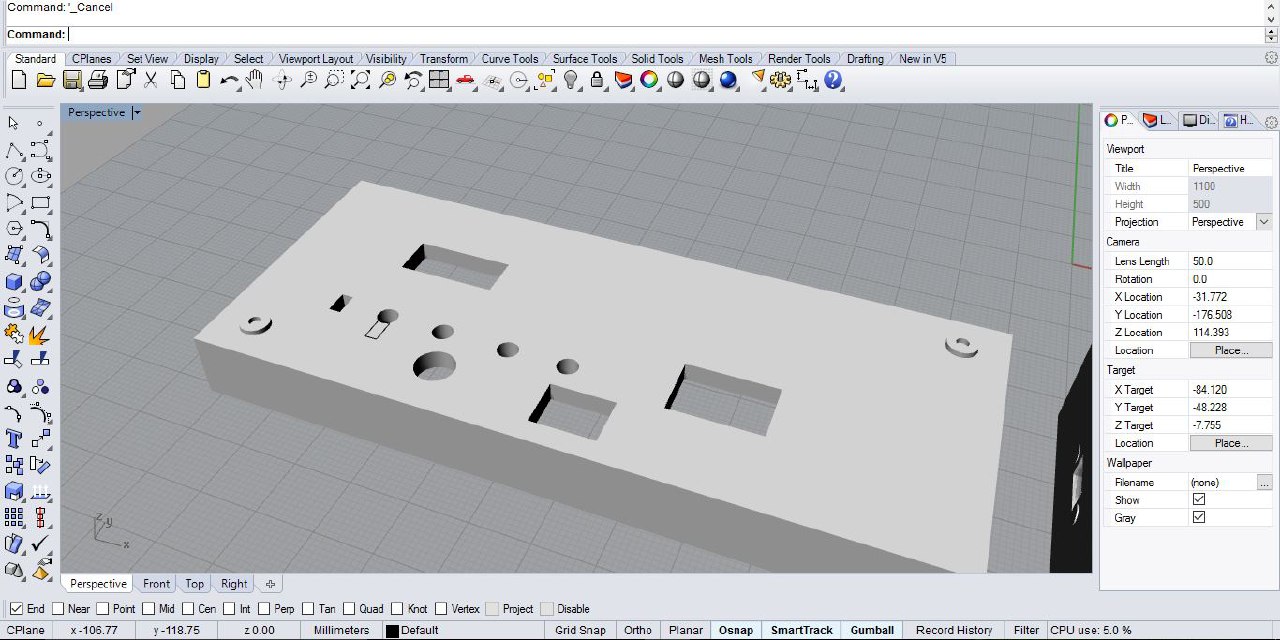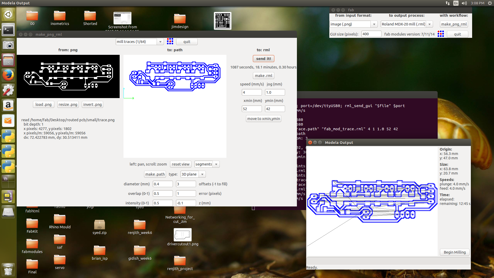 Still i am continuing in working with different processes and machines, what i learned in this week is to make a double side board in modela machine. The 3D design of my case is going in rhinoceros and finding correct refelctor material is on going. It was a different experience from regular college experience.