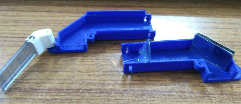 I have planned to put the screws to fasten the Data Glass two parts due to space constrain i am unable so,i have designed a C-clamp which can hold the top and botton parts together and also the buttons went inside to i have designed the small cylinders shapes so i can stick them on top of buttons.and also glass holder small c-clamps also i have designed the reflector with 2mm acrylic sheet and i have cutted using the Laser Cutter. The original design files are added in conclusion page.