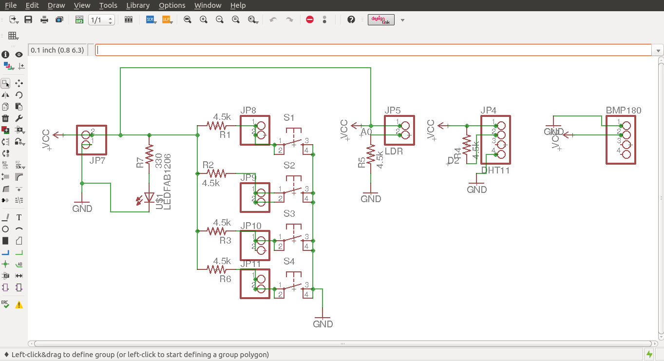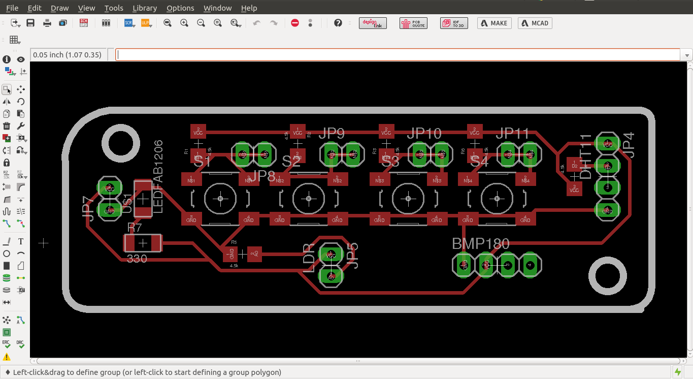 Now i have to design my sensor and switch board for which i have placed the all components and done the manual routing as there are very less components here you can see the schematics and board design