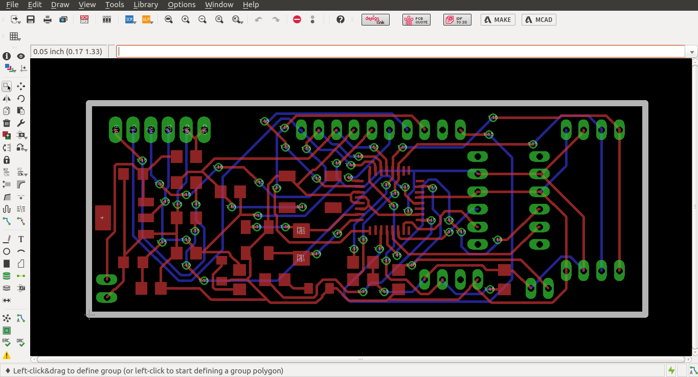 I have designed a board using the ATMega328P AU ,in the form factor of the 30mmx80mm and i was able to design the board using the Autodesk Eagle Software i have decided to make the double sided PCB as the formfactor is small ,i have applied the DRC accordingly and i have done the auto route then i was able to sucessfully design the board