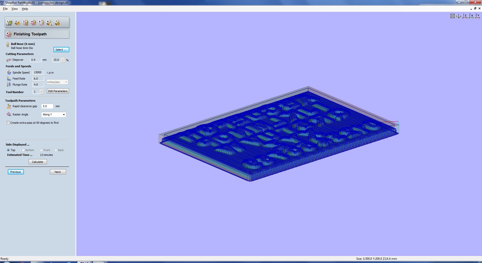 Step4: This is the finishing toolpath of the model, In this also we can select the bits and other parameters for finishing the part. I have selected 6mm ballnose endmill bit for finishing purpose. Simulated the toolpath and showed 13mins of finishing tool path.