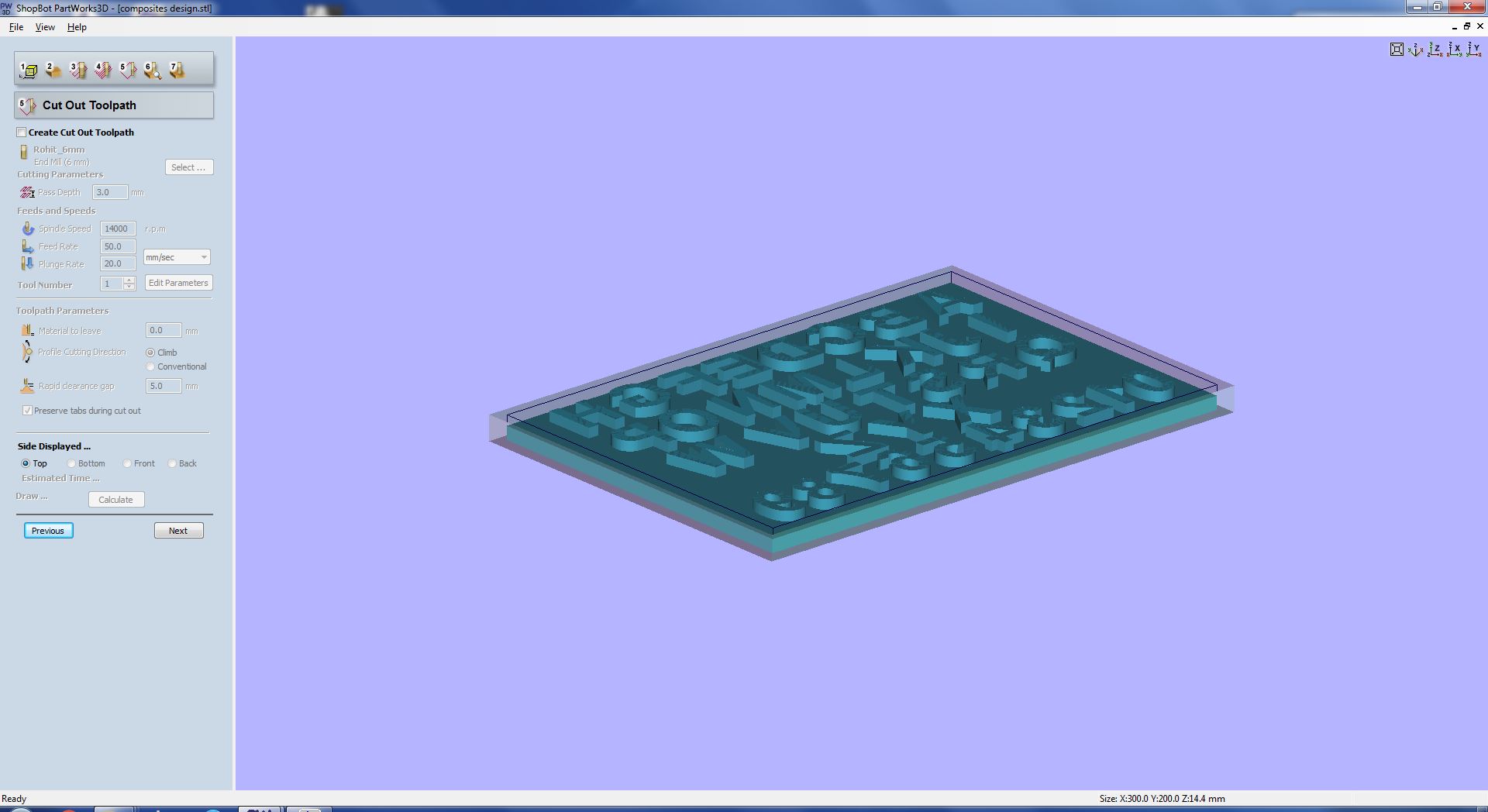 Step5: This is the final profile path, if you want to cut out the model from the piece we can give the cut out toolpath. In my design i added some extra dimensions to fix the part on the shopbot, So i selected the 6mm bit for cut out the part. It showed aroung 4minutes to cut the part.