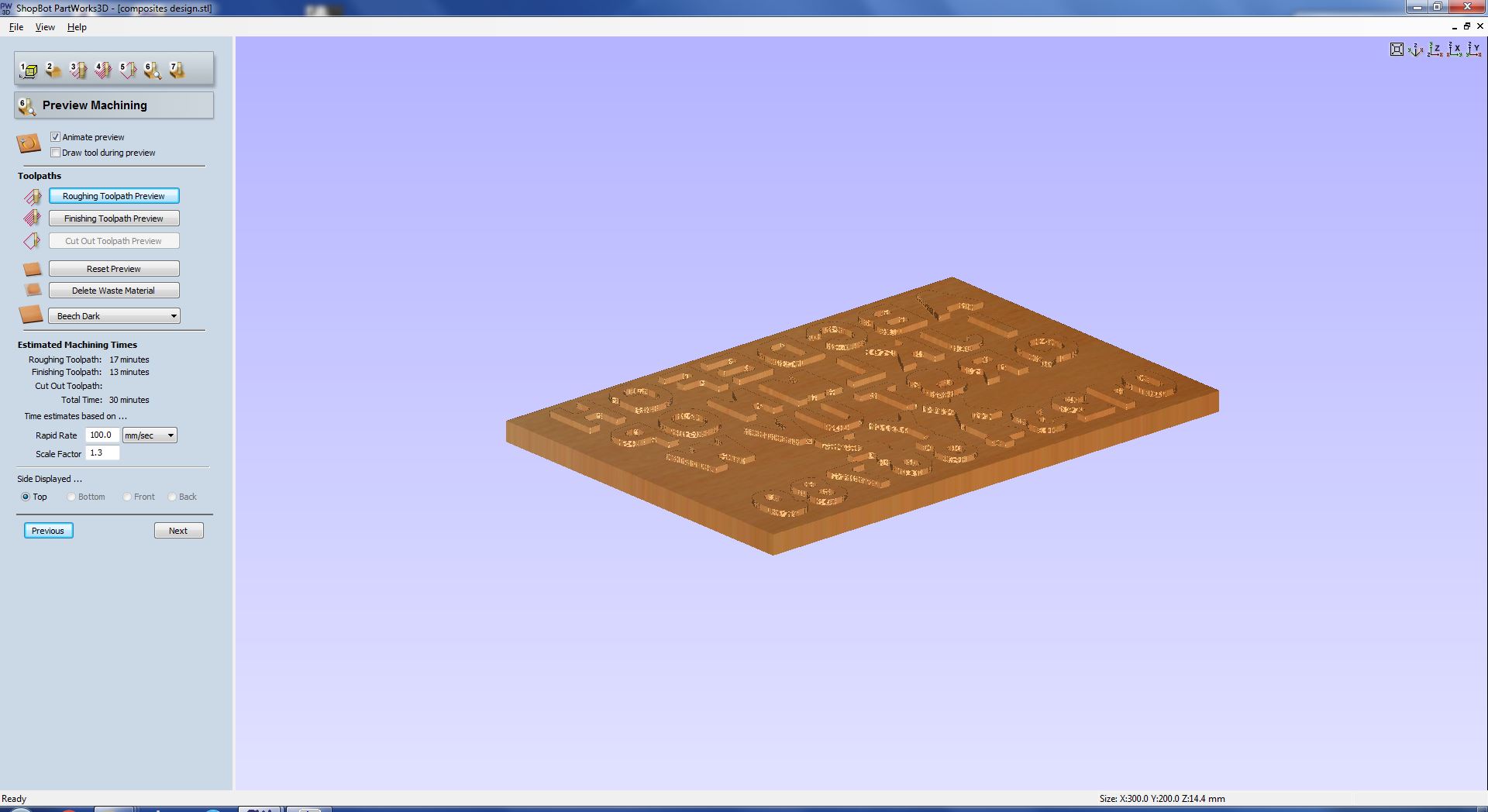 Step6: In this window we can see the simulations of each profiles, we can check and if necessary we can go back and do the modifications in each profiles. After the check you can click next so that the final window will appear and from that we can save the individual shopbot files in .sbp format so that we can process in shopbot.
