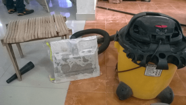 Next the entire part is covered with polythene sheet and over that i covered with the breather fabric , the breather fabric will absorb the extra resins from the mold. The entire part is kept inside the vaccum bag i made earlier and used Shopvac 6.5HP vaccum cleaner and is shown below.
