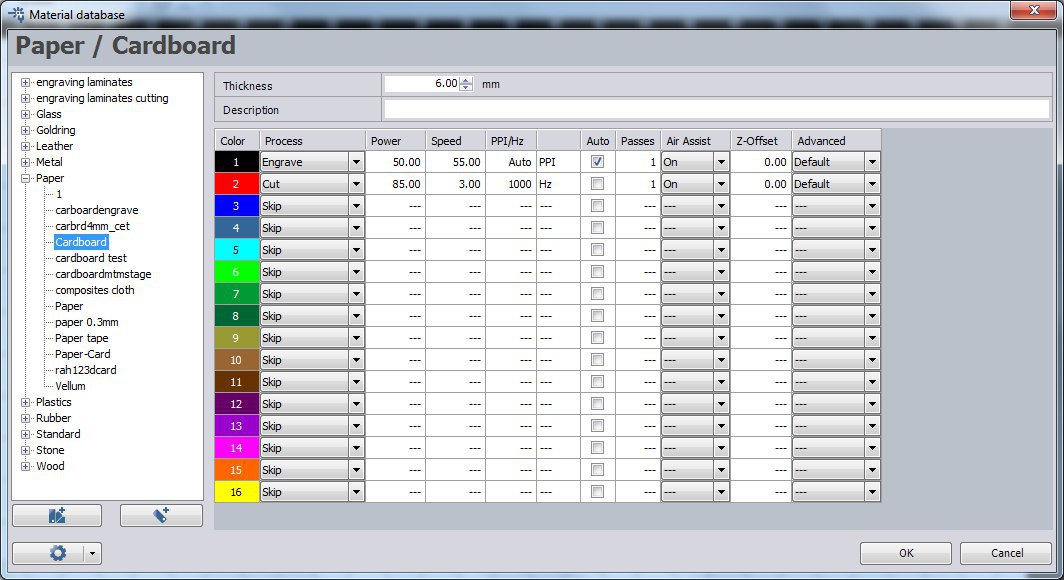 We have done a power variation test in craft wood. First we made a plate of different colored rectangles for engraving and we have set the power for each different values starting from black color power as 80,Power 60 to Blue color, Power 40 to Green and Power 20 to Violet. The plate is processed and we got different engraving depths in each as expected.
