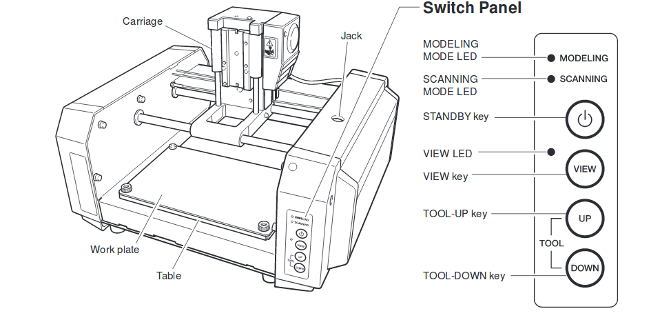 • Tool Up, moves the cutting head up.