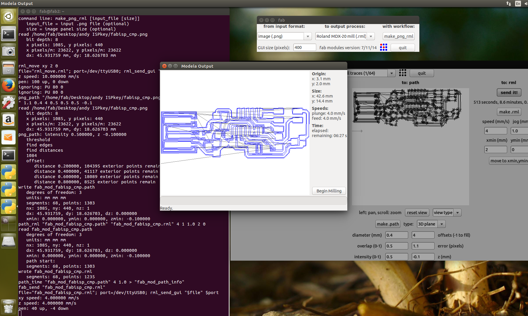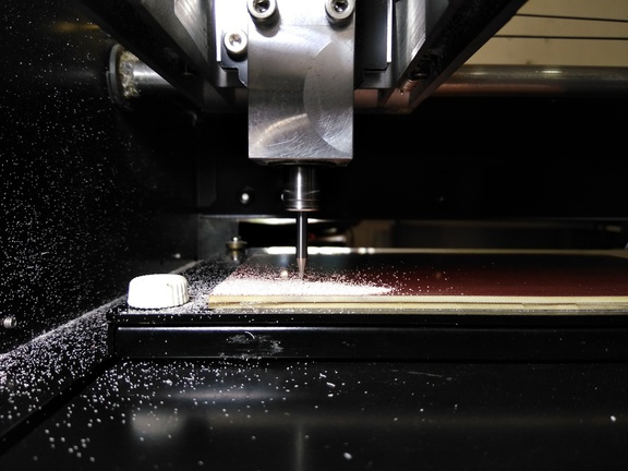 Then we will send the make rml to the machine and the action starts and we can see the traces are being milled and finally we can observe near the milling machine