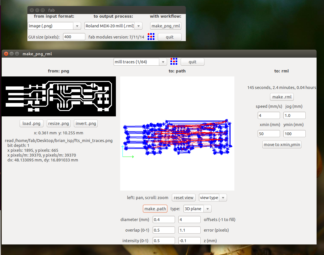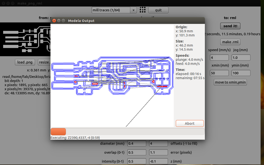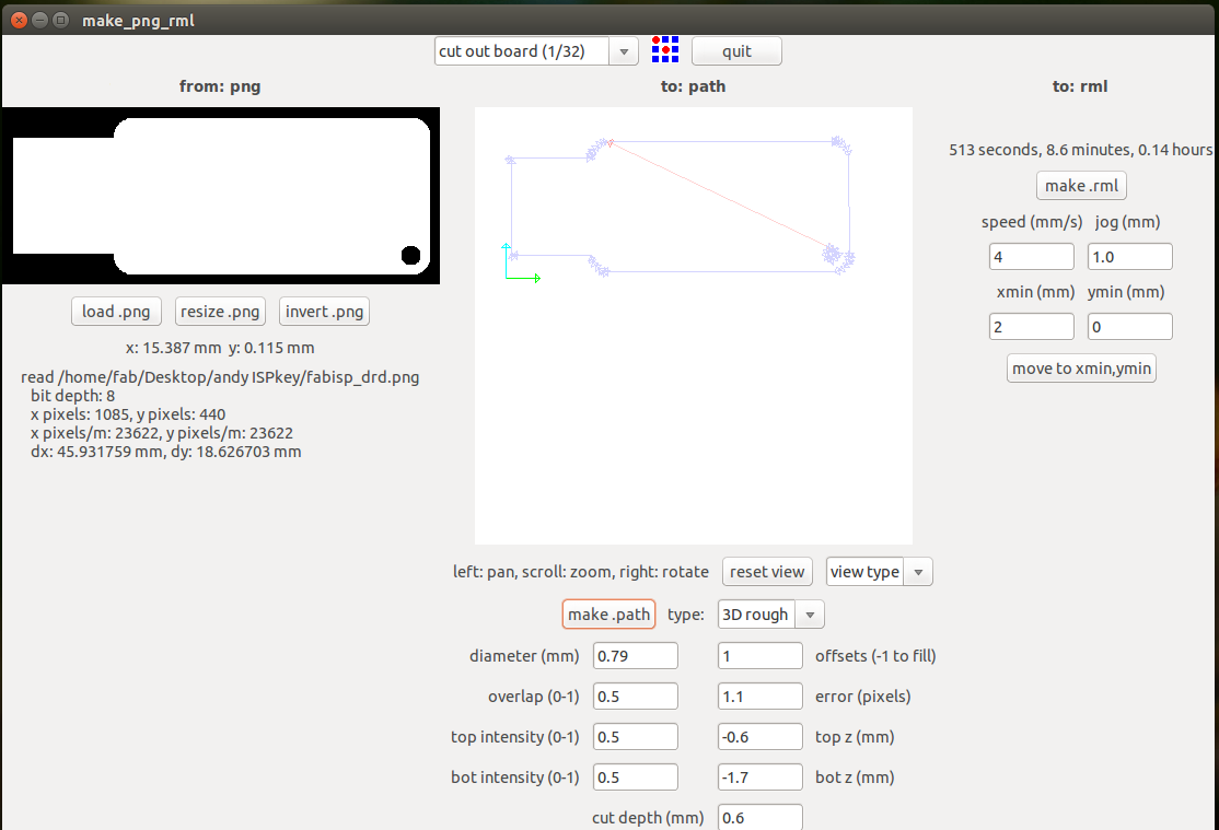 Then we have to choose the png which we want the traces and we find this kind of interface when we do the make it there we select the required settings for tracing we select the 1/64 mill traces and the origin is set my origin is set at x,y (2,0)