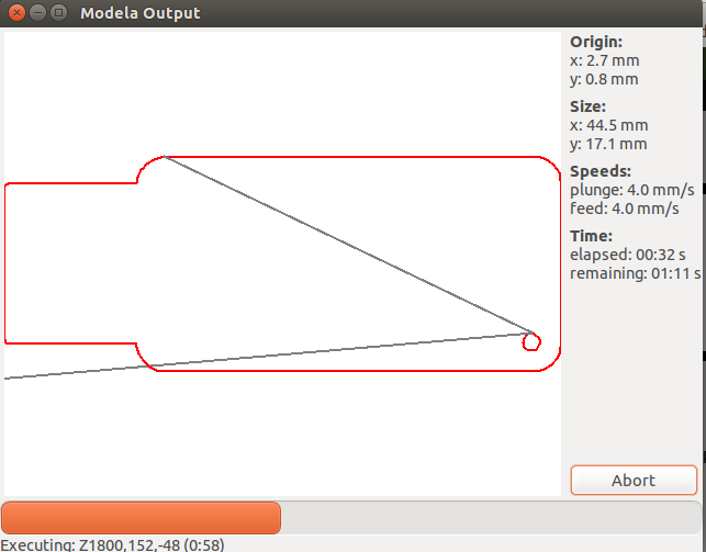 Now the final process of the machine procedure comes where we will set the origin to the we set before (i.e;(x,y)(2,0)) and then we will load the .png used to cut the board and choose the cutting 1/32 bit then change the bit and similarly make .rml and then send it to machine Warning ! don't forget to make the origin as same as done before this can mess all your milling