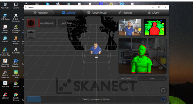 Now finally the third software for the 3d scanning i have used is Reconstructme is another free software, that I tried, it’s a bit difficult than skanet and the user interface is not friendly. There is less graphical cues to guide the user and there is no live preview. You have to first input your settings and click scan and the object will be scanned with the settings. The main difficultly I had with reconstructme was that it lost tracking quite often which makes It unsuitable for hand held scanning.